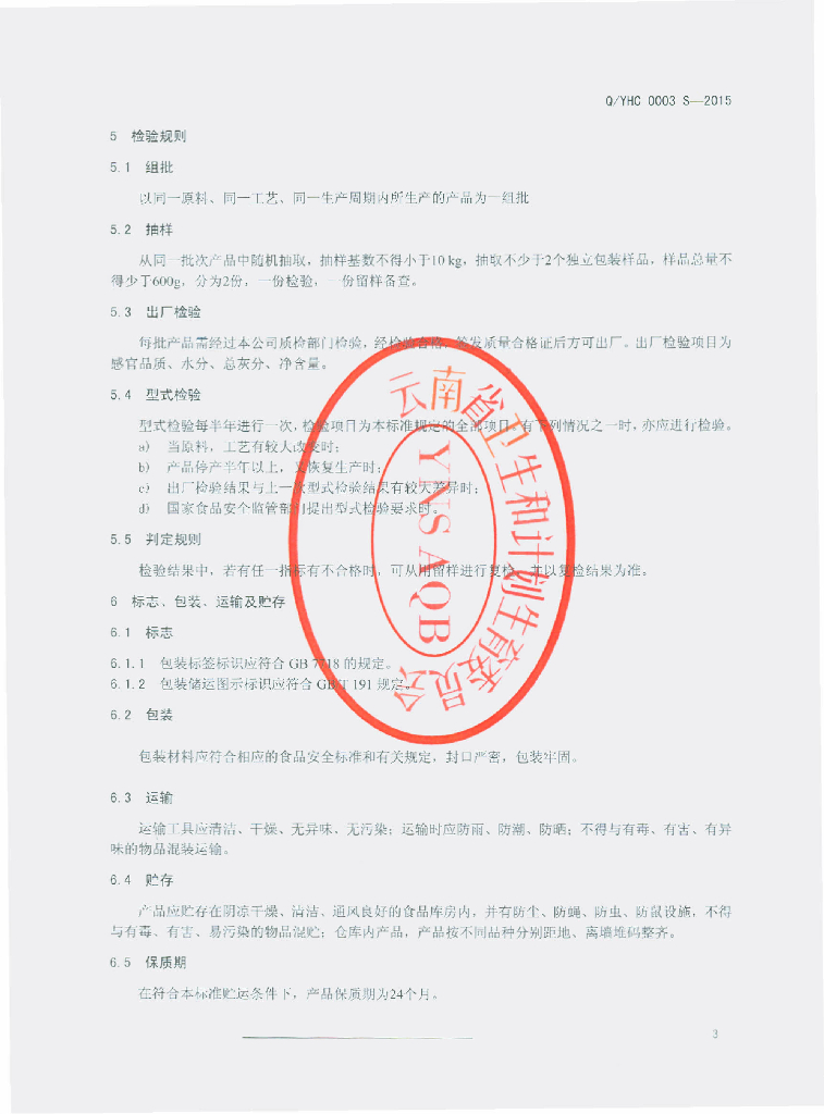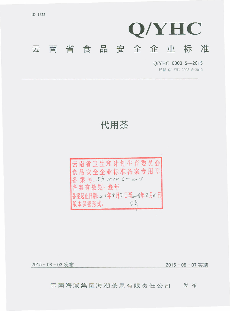Q/YHC 0003S-2015 云南海潮集团海潮茶果有限责任公司 代用茶
