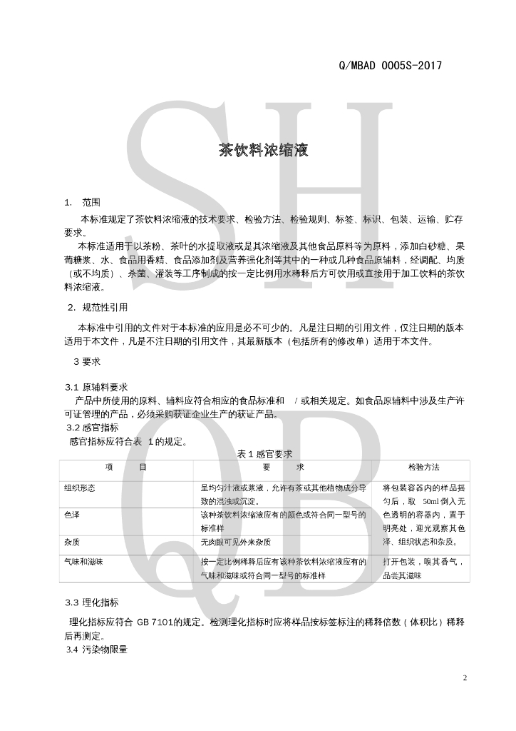 Q/MBAD 0005S-2017 茶饮料浓缩液