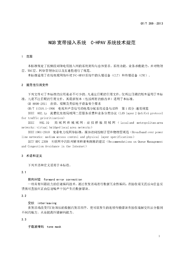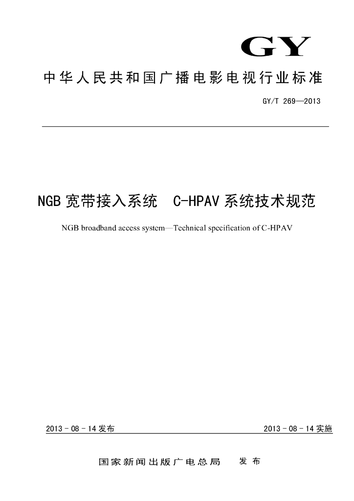 GY/T 269-2013 NGB宽带接入系统C-HPAV 系统技术规范