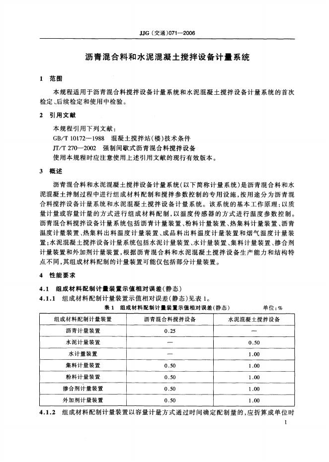 JJG(交通)071-2006 沥青混合料和水泥混凝土搅拌设备计量系统检定规程