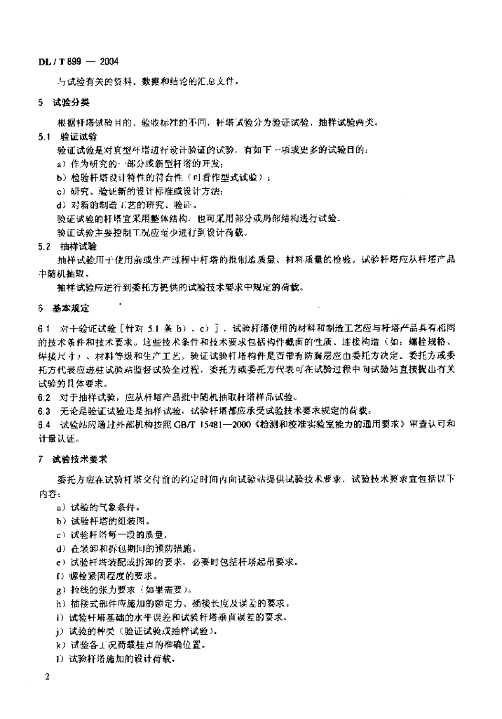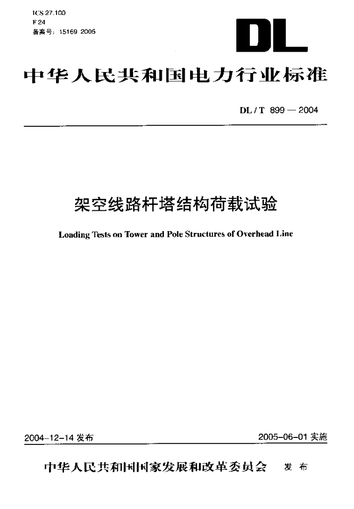DL/T 899-2004 架空线路杆塔结构荷载试验