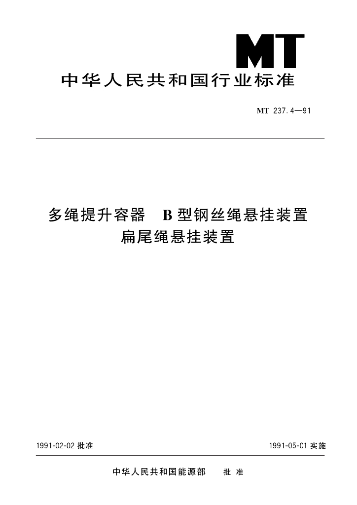 MT 237.4-1991 多绳提升容器 B型钢丝绳悬挂装置 扁尾绳悬挂装置
