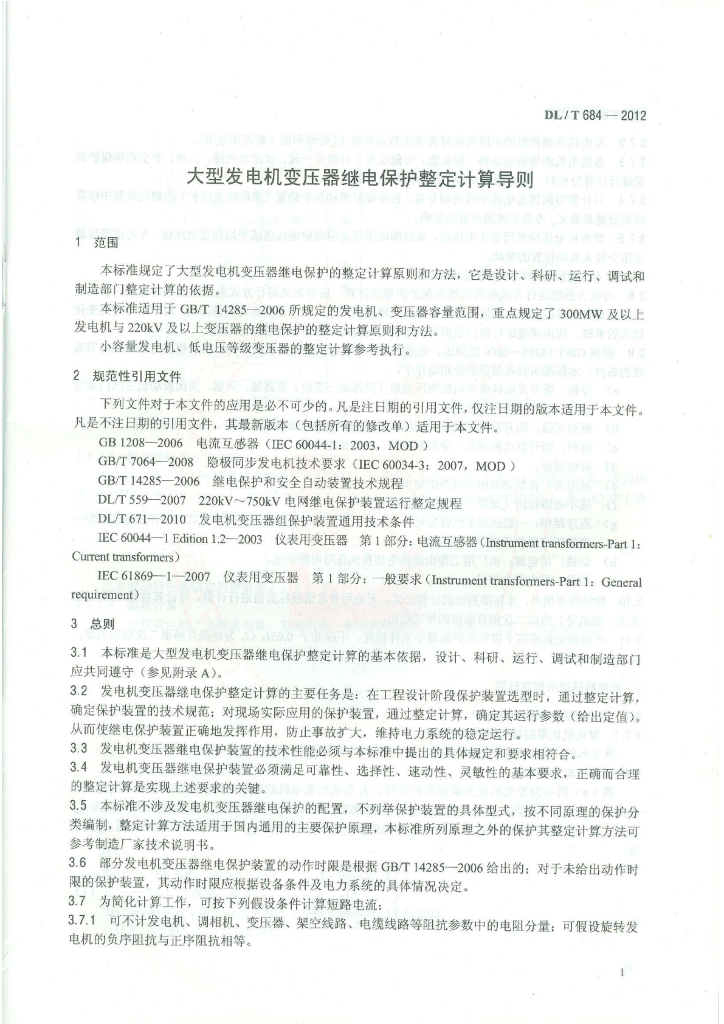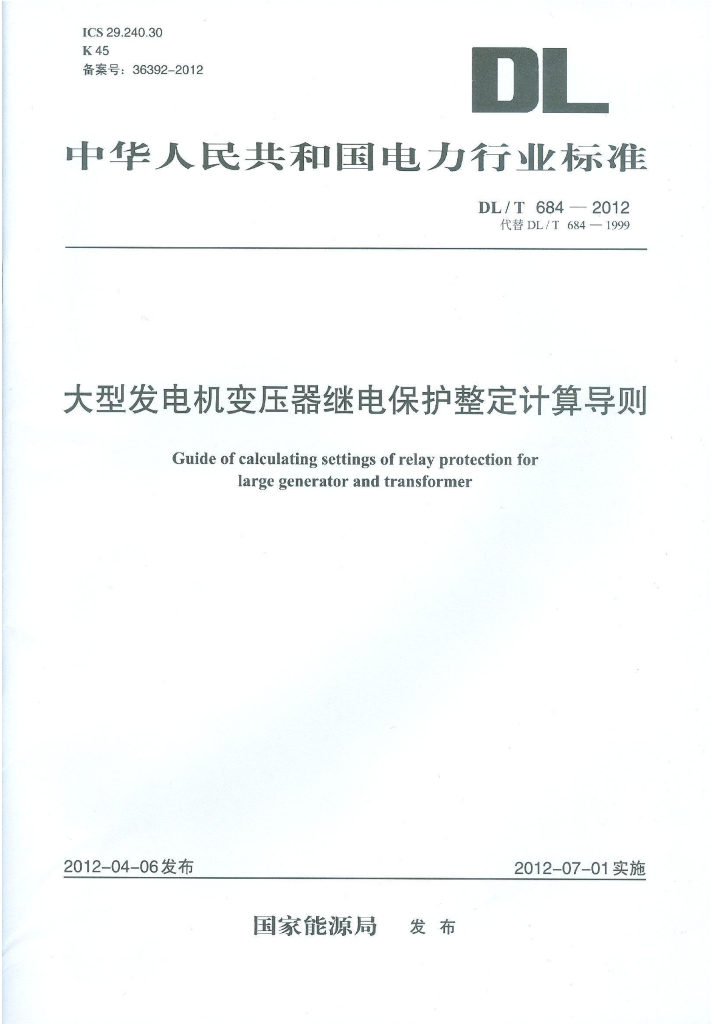 DL/T 684-2012 大型发电机变压器继电保护整定计算导则