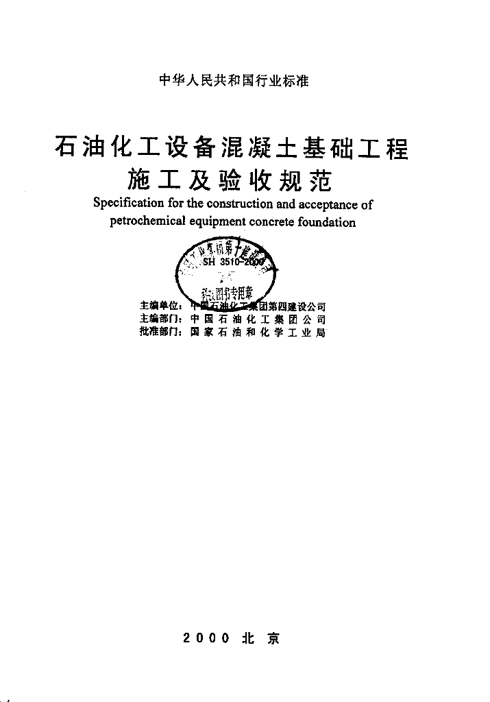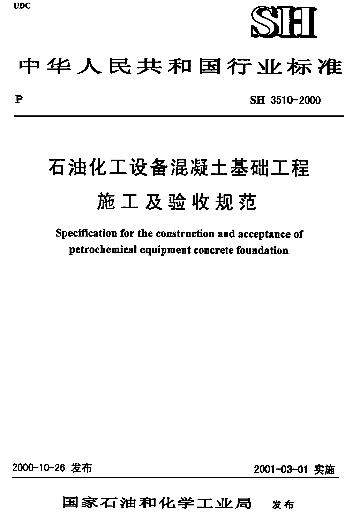 SH 3510-2000 石油化工设备混凝土基础工程施工及验收规范