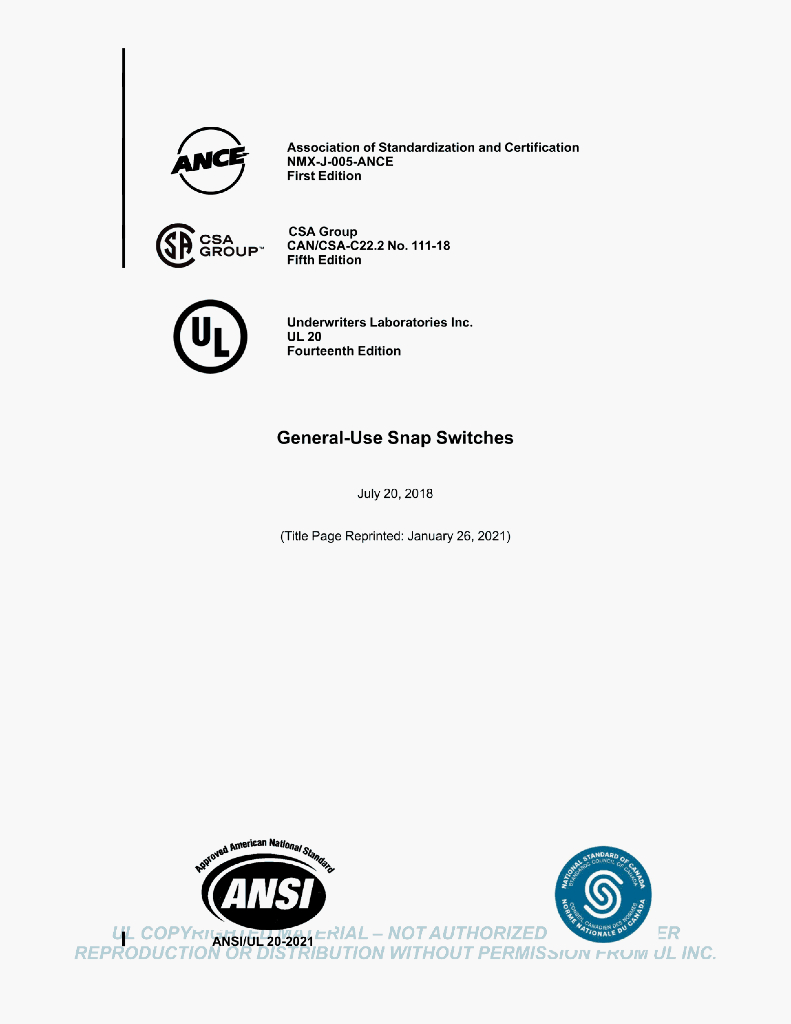 UL 20 STANDARD FOR SAFETY General-Use Snap Switches