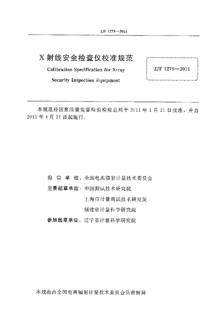 中国测试技术研究院、上海市计量测试技术研究院、福建省计量科学研究院、辽宁省计量科学研究院