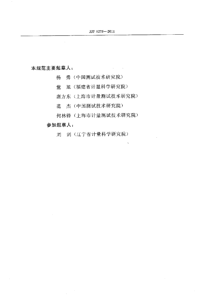 杨勇(中国测试技术研究院)、董旭(福建省计量科学研究院)、唐方东(上海市计量测试技术研究院)、范杰(中国测试技术研究院)、何林锋(上海市计量测试技术研究院)、刘剑(辽宁省计量科学研究院)