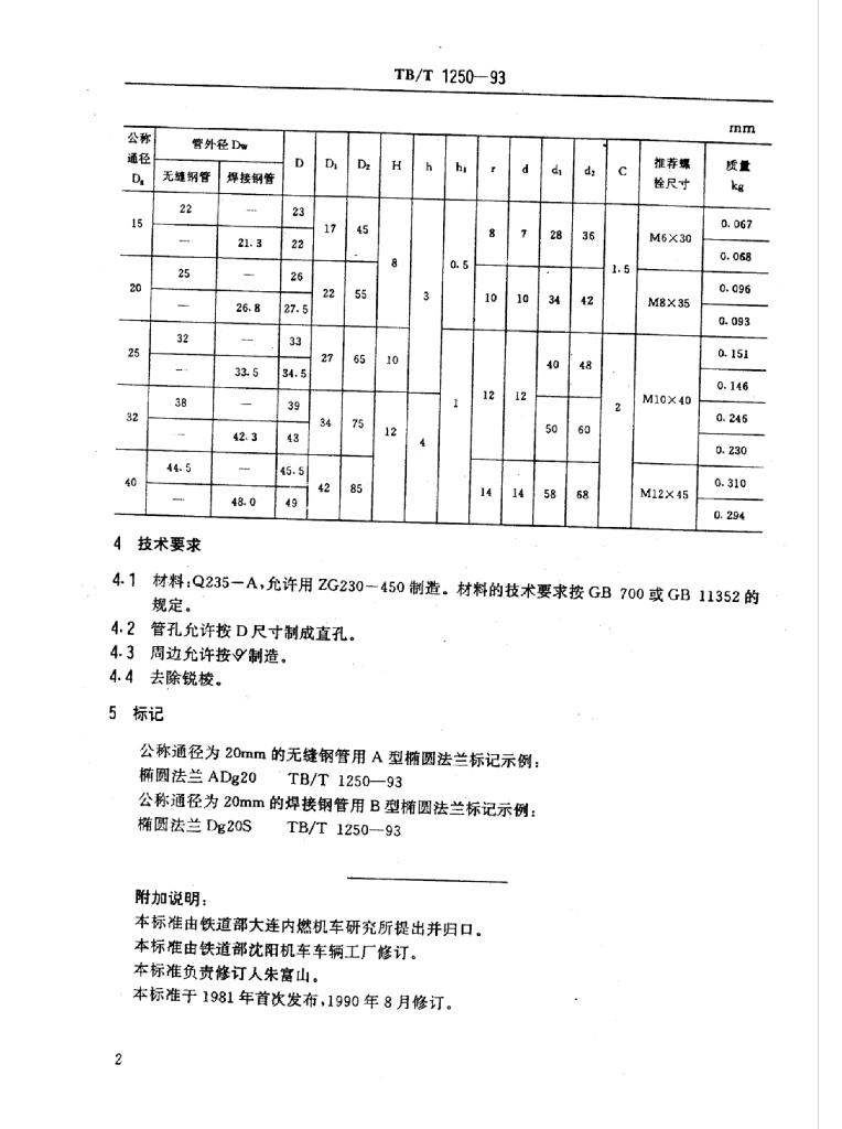 TB/T 1250-1993 椭圆法兰
