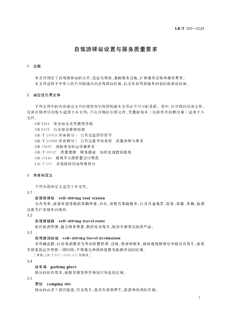 LB/T 090-2024 自驾游驿站设置与服务质量要