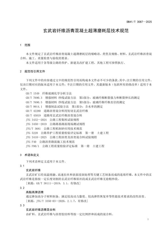 DB41/T 3087-2025 玄武岩纤维沥青混凝土超薄磨耗层技术规范