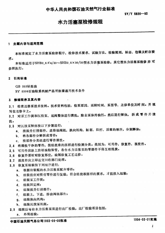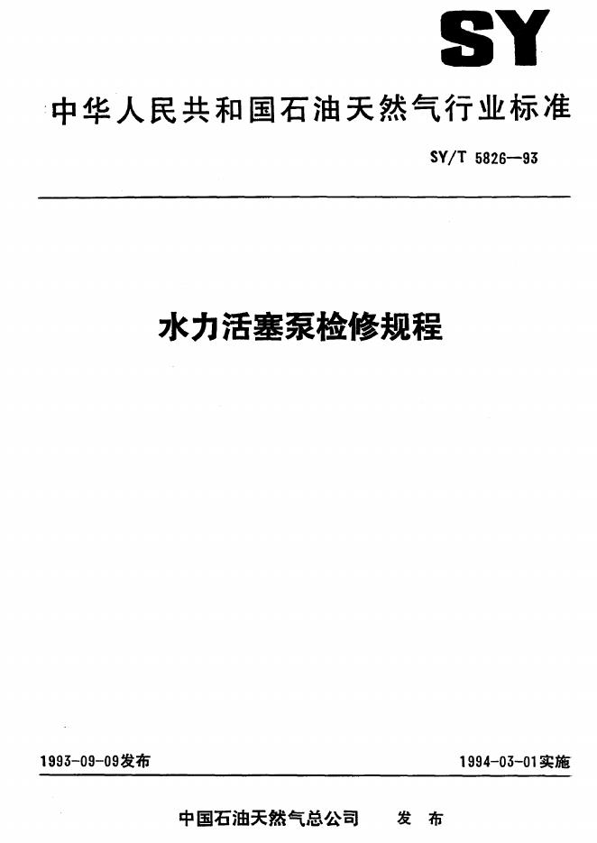 SY/T 5826-1993 水力活塞泵检修规程