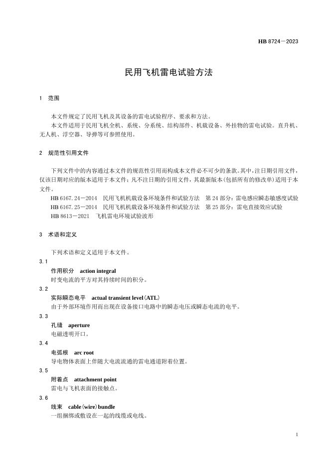 HB 8724-2023 民用飞机雷电试验方法