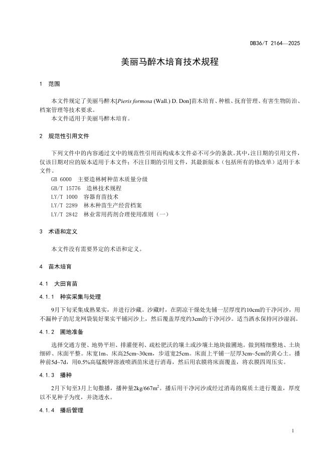 DB36/T 2164-2025 美丽马醉木培育技术规程
