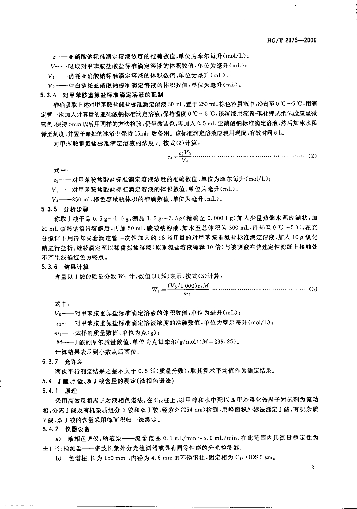HG/T 2075-2006 J酸(2-氨基-5-萘酚-7-磺酸)