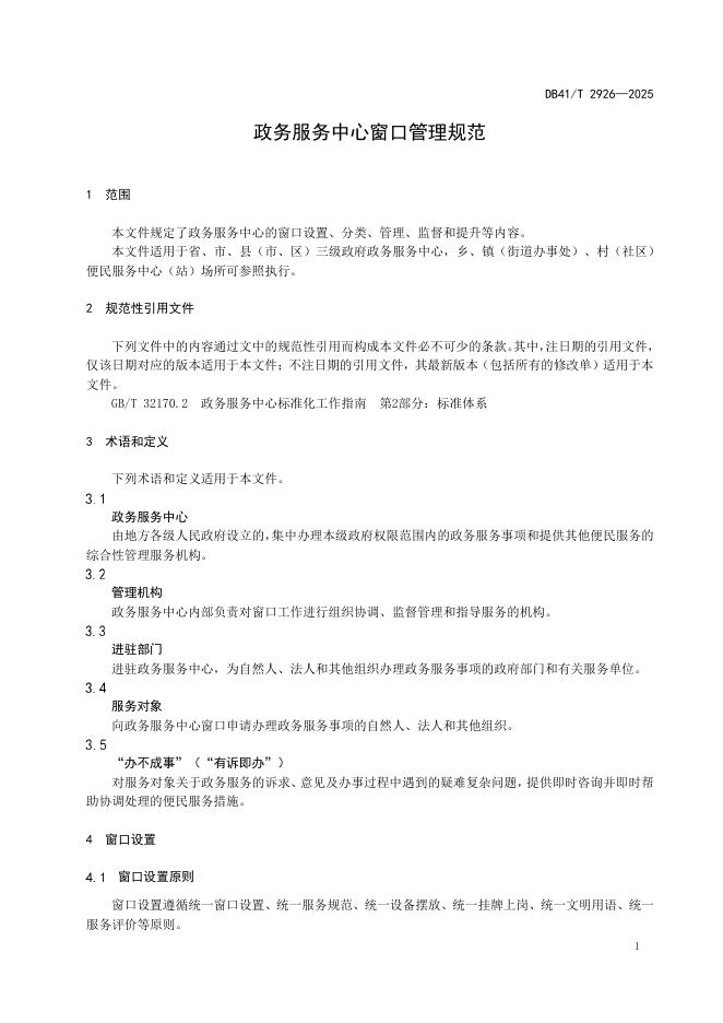 DB41/T 2926-2025 政务服务中心窗口管理规范