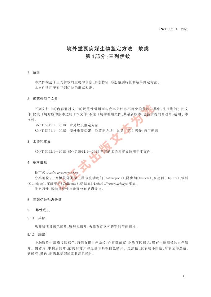 SN/T 5921.4-2025 境外重要病媒生物鉴定方法 蚊类 第4部分:三列伊蚊