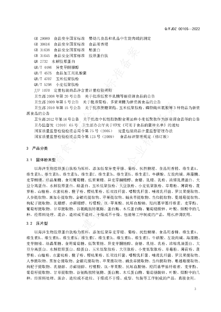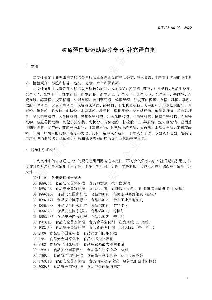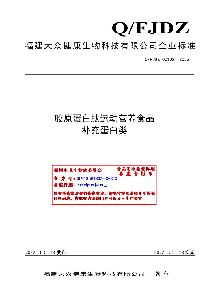 Q/FJDZ 0010S-2022 胶原蛋白肽运动营养食品 补充蛋白类