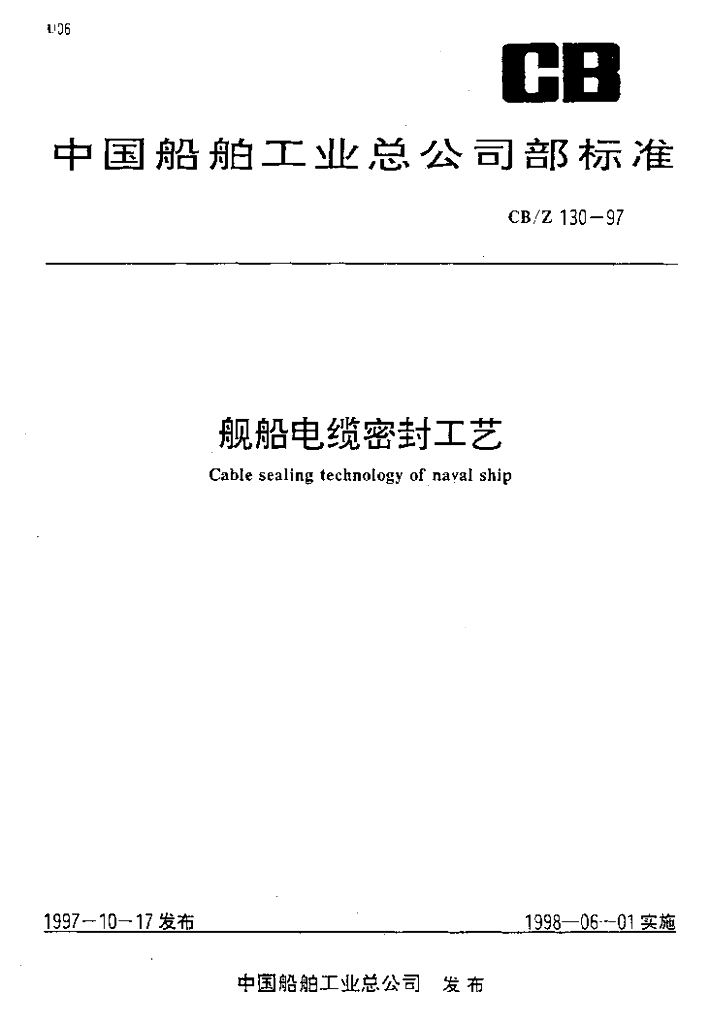 CB/Z 130-1997 舰船电缆密封工艺