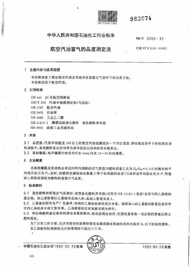 SH/T 0506-1998 航空汽油爆震特性测定法(增压法)
