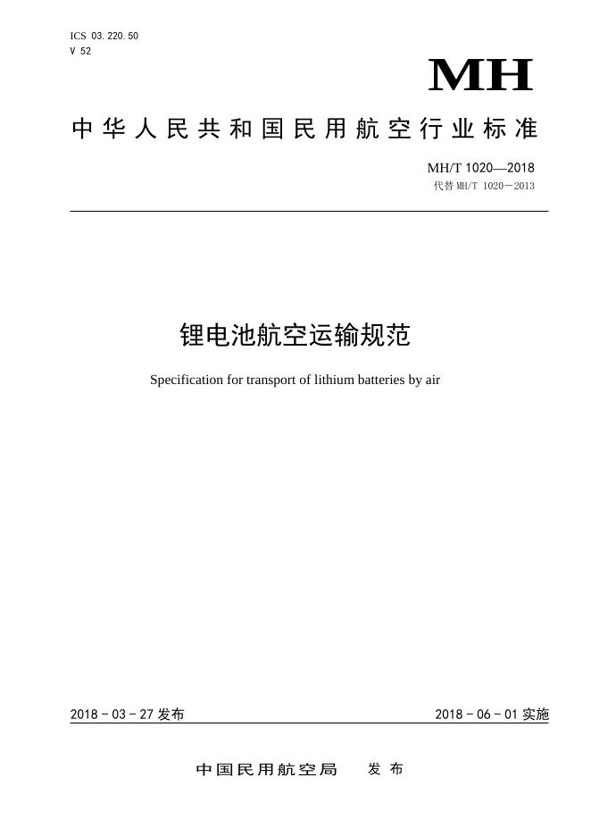 MH/T 1020-2018 锂电池航空运输规范