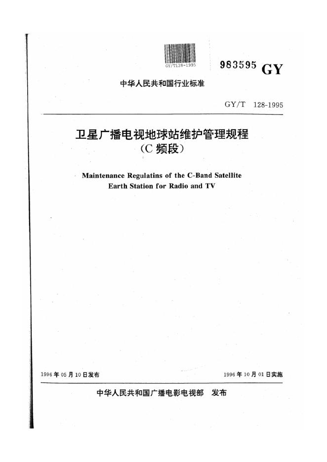GY/T 128-1996 卫星广播电视地球站维护管理规程(C频段)