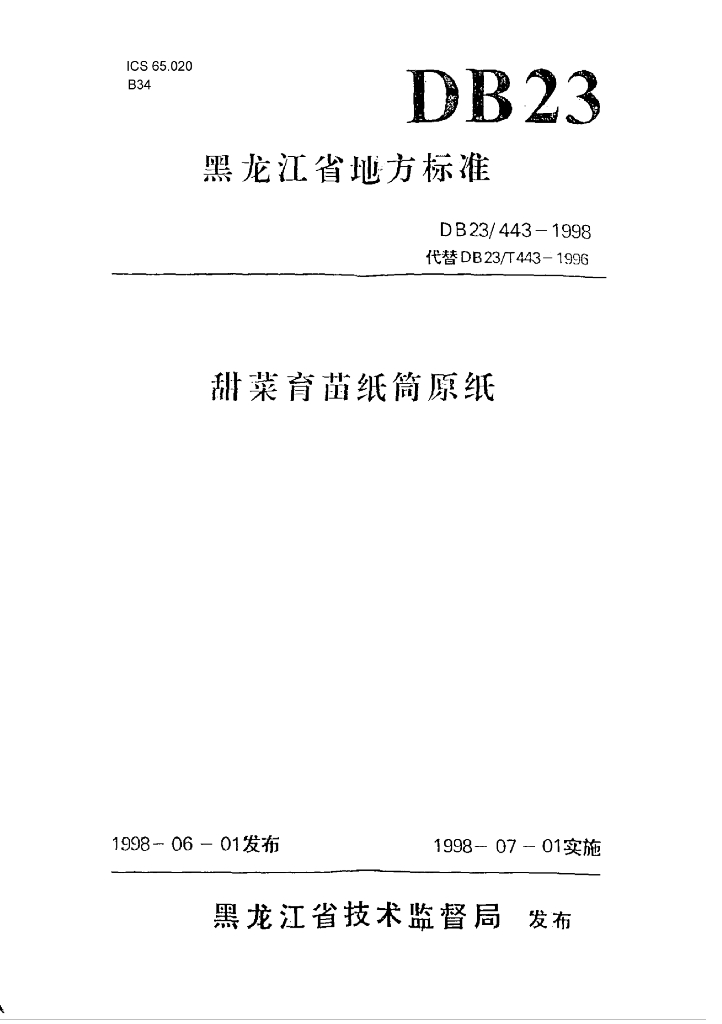 DB23/ 443-1998 甜菜育苗纸筒原纸