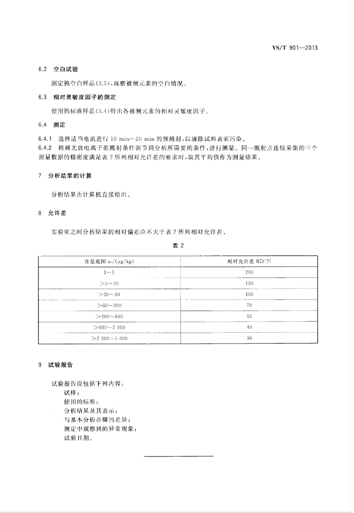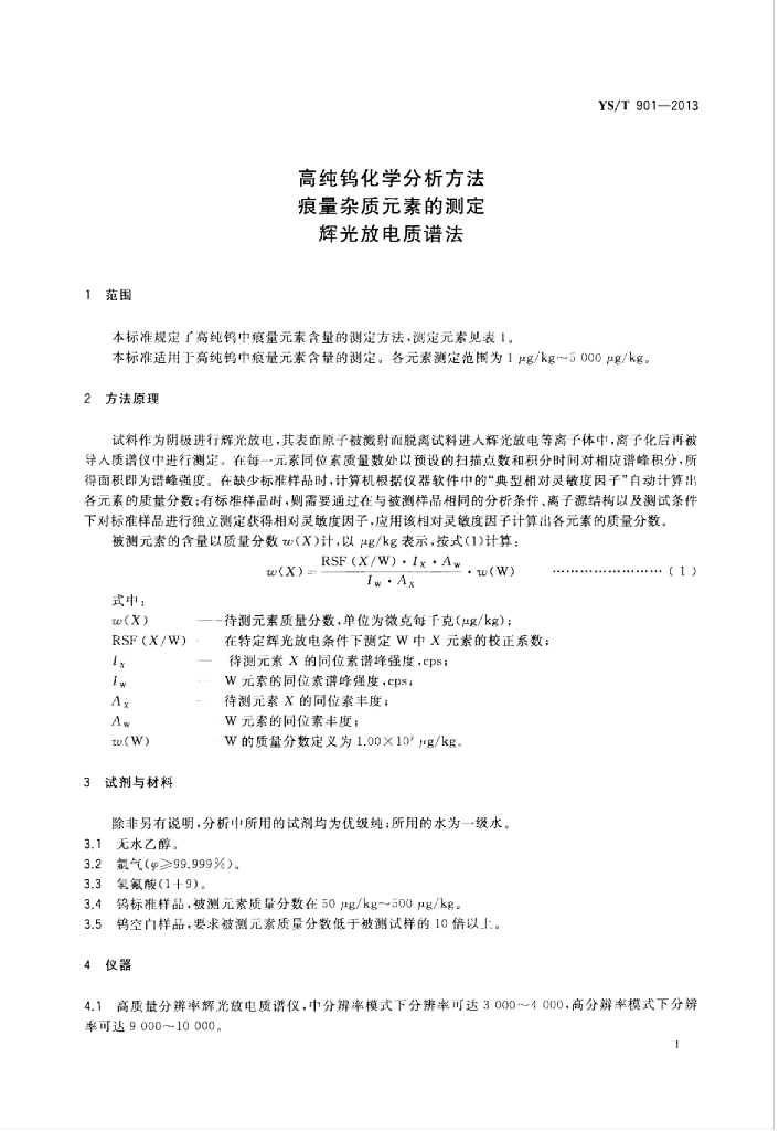 YS/T 901-2013 高纯钨化学分析方法痕量杂质元素的测定辉光放电质谱法