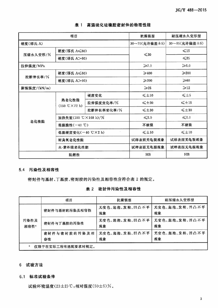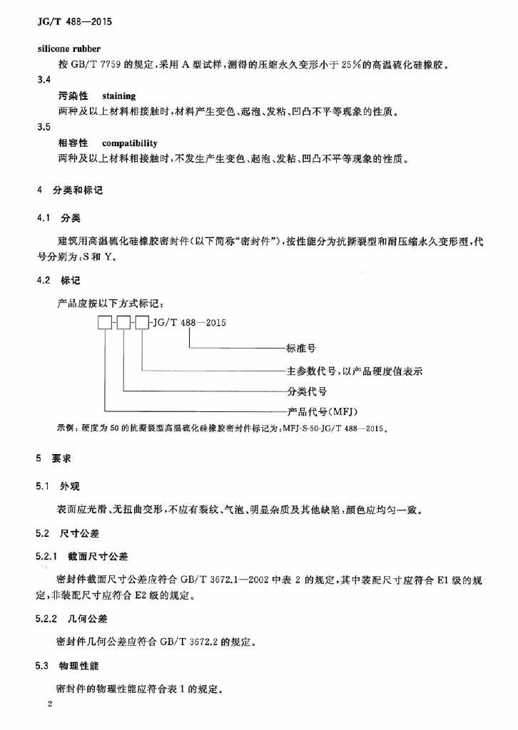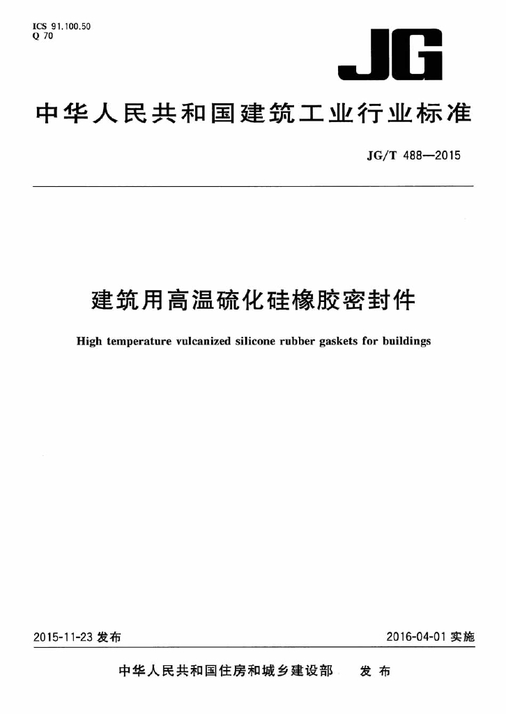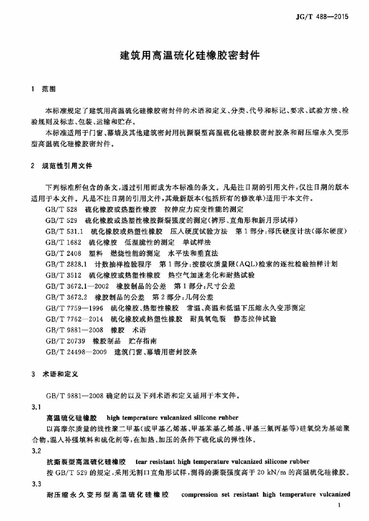 JG/T 488-2015 建筑用高温硫化硅橡胶密封件