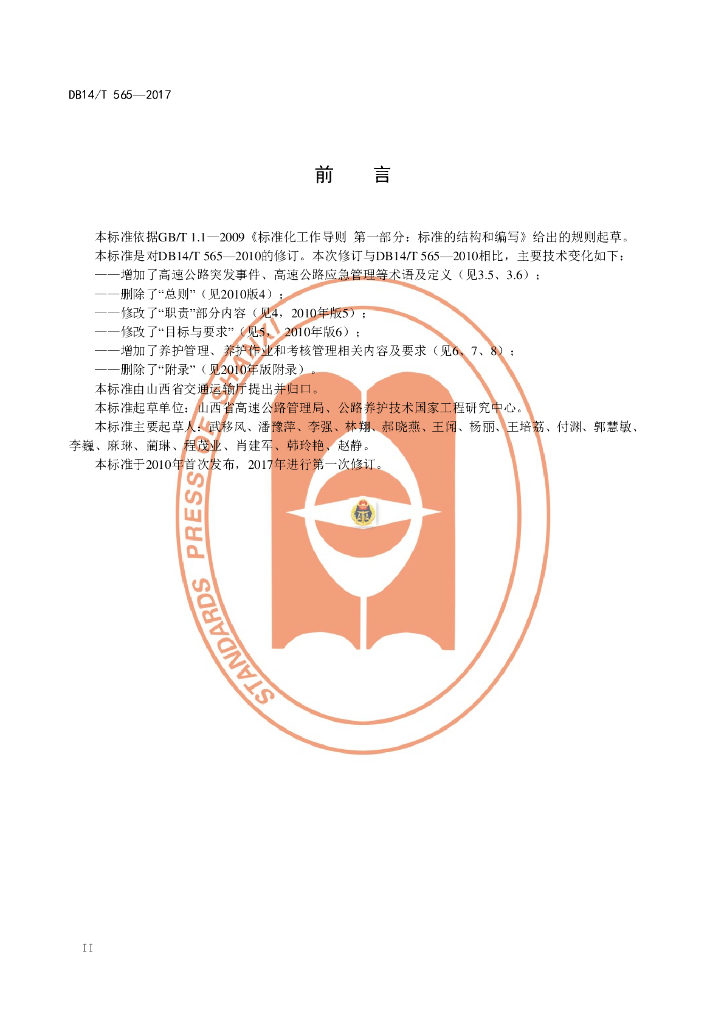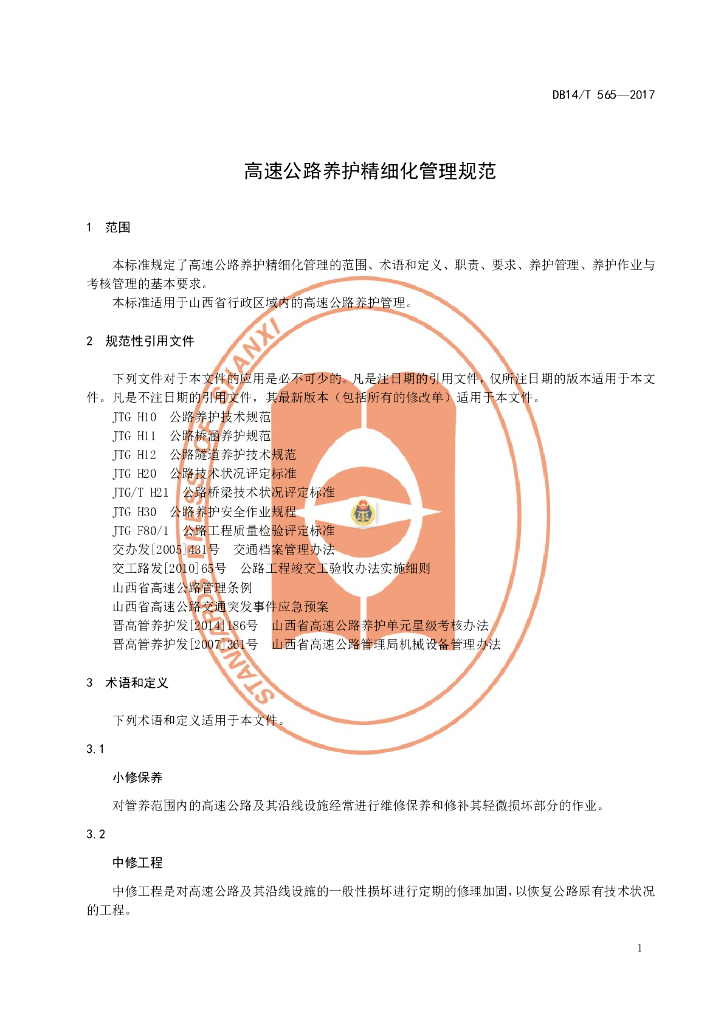 DB14/T 565-2017 高速公路养护精细化管理规范