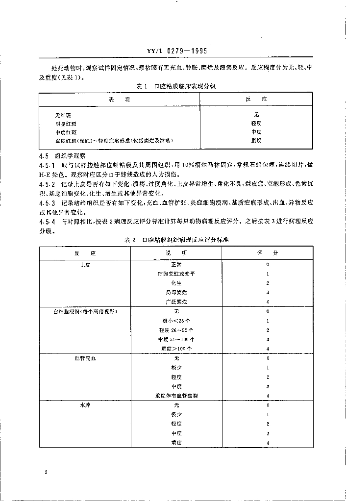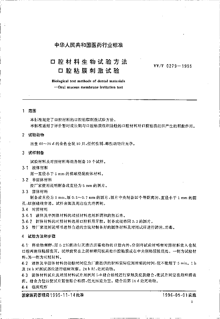 YY/T 0279-1995 口腔材料生物试验方法口腔粘膜刺激试验