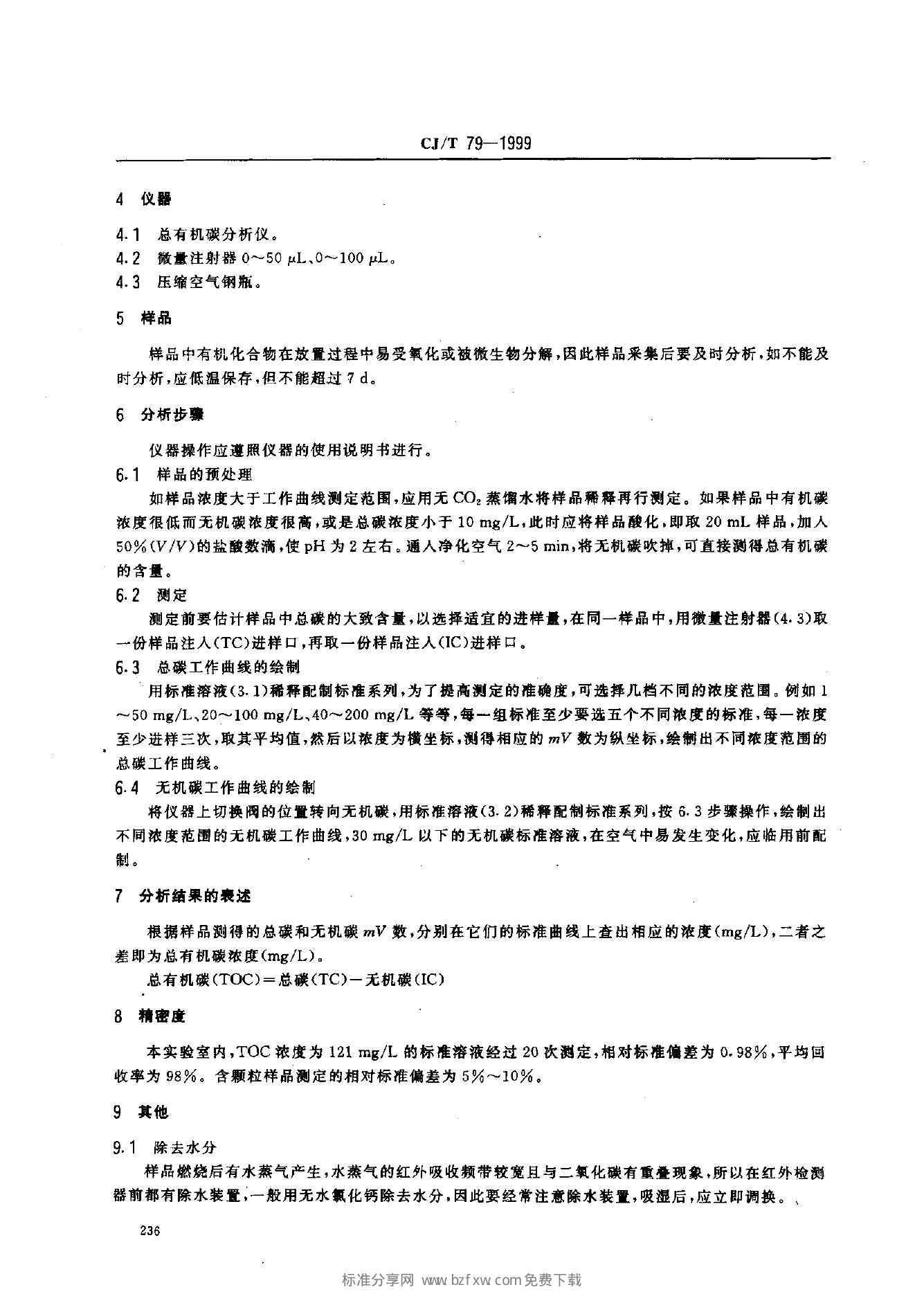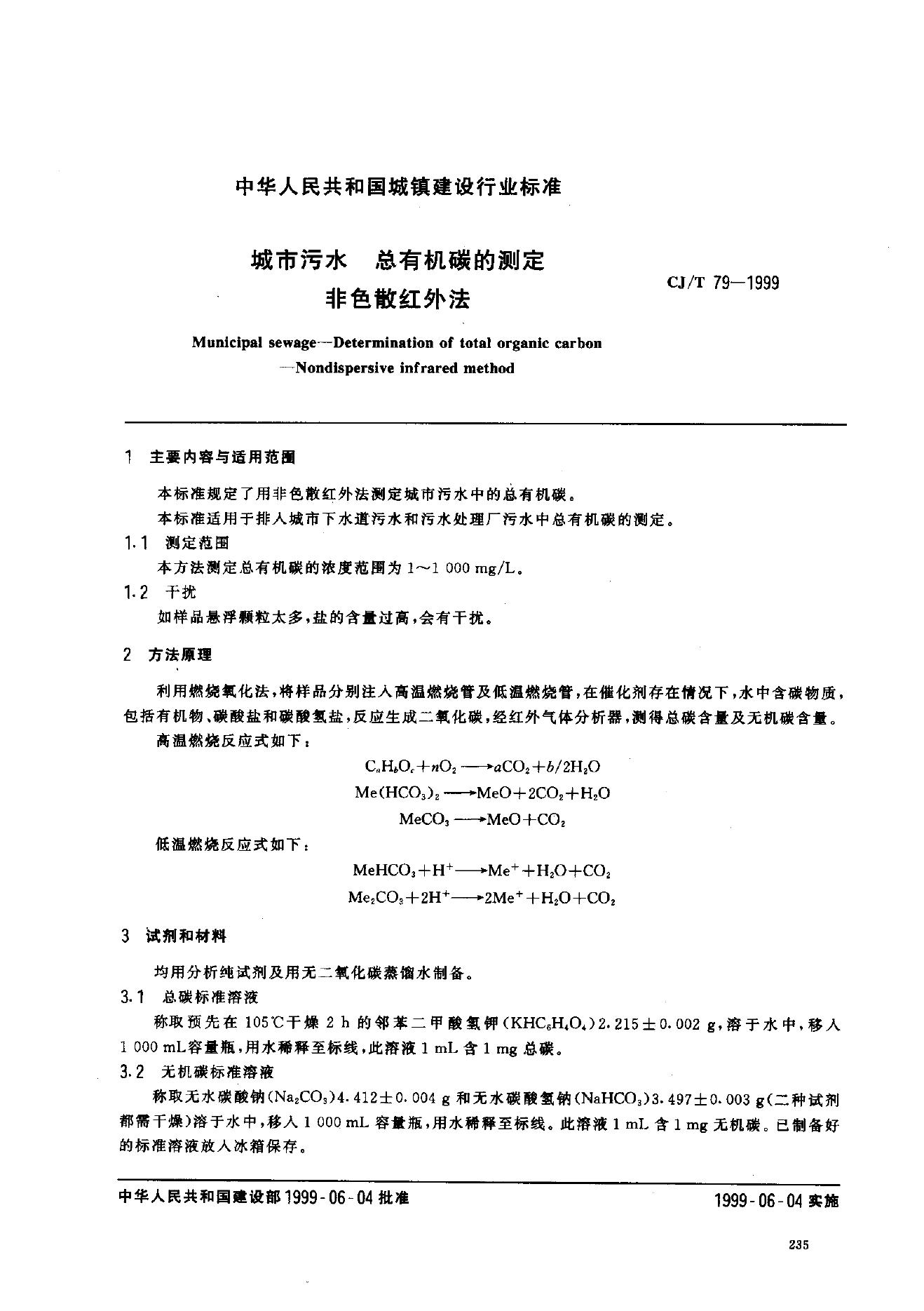 CJ 26.29-1991 城市污水水质检验方法标准 总有机碳的测定 非色散红外法