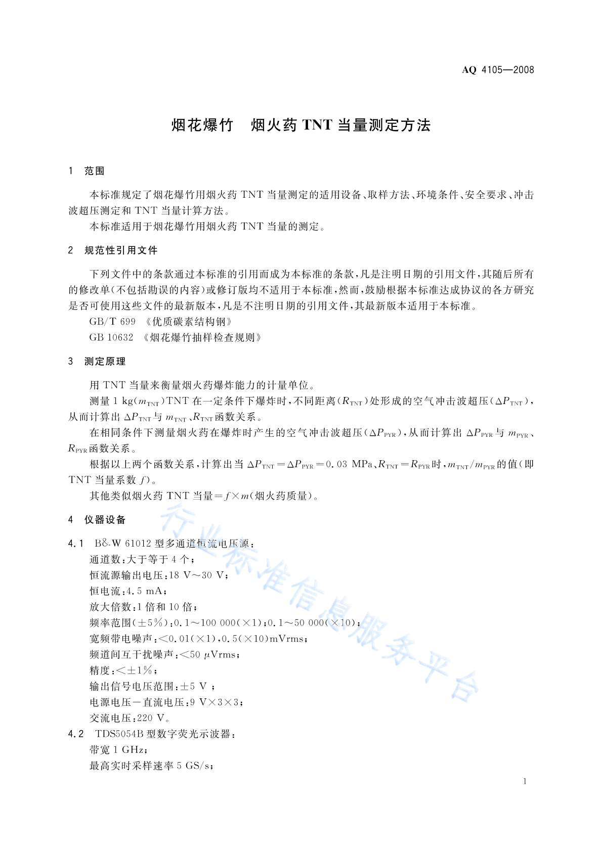 AQ/T 4105-2008 烟花爆竹 烟火药TNT当量测定方法
