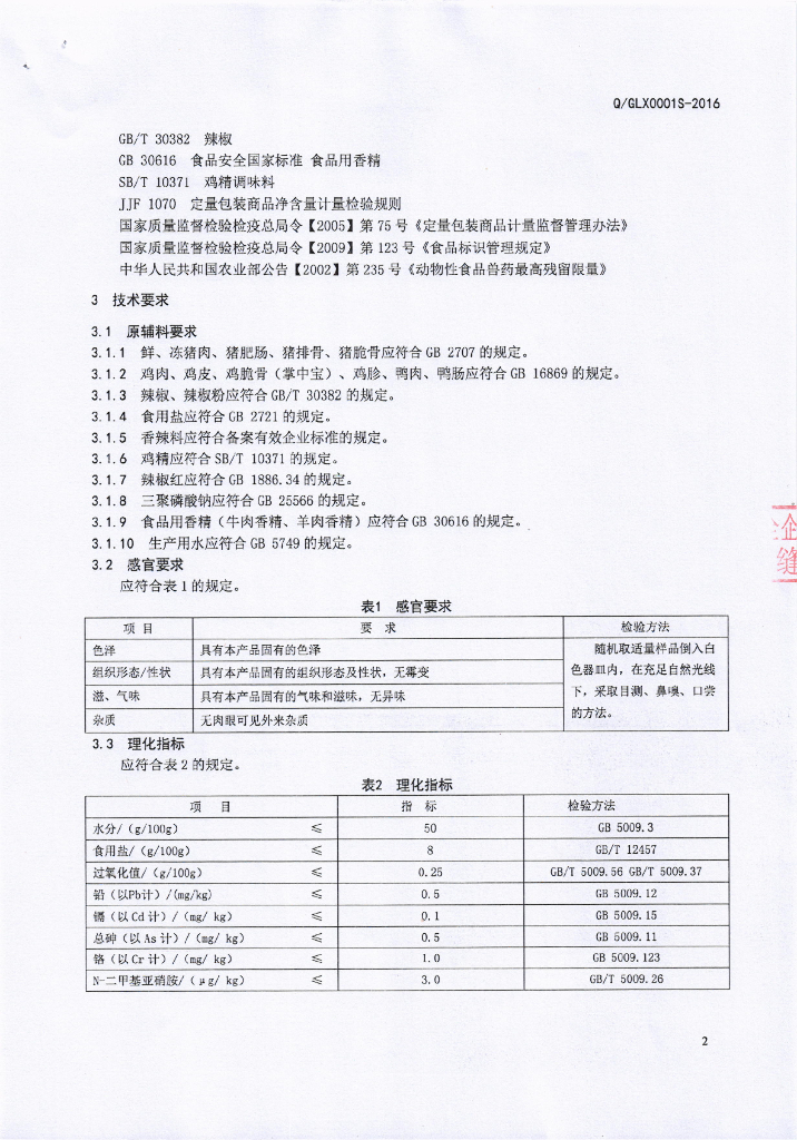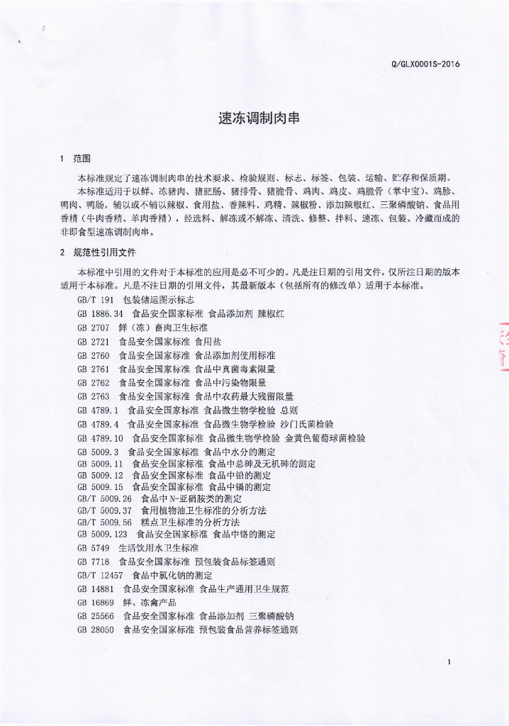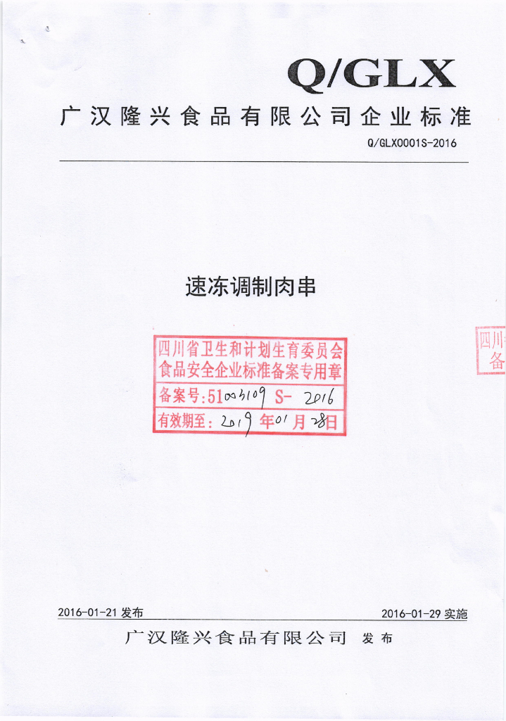 Q/GLX 0001S-2016 广汉隆兴食品有限公司 速冻调制肉串