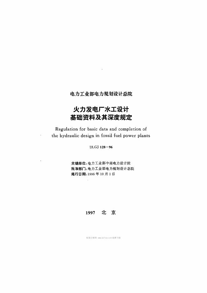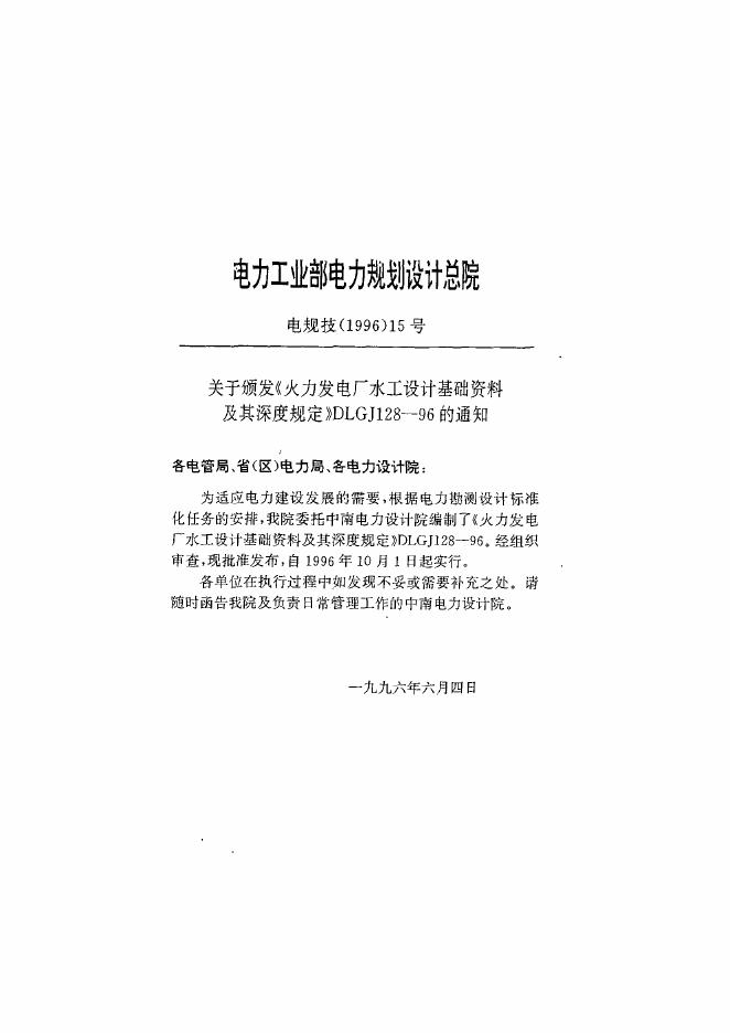 DLGJ 128-1996 火力发电厂水工设计基础资料及其深度规定