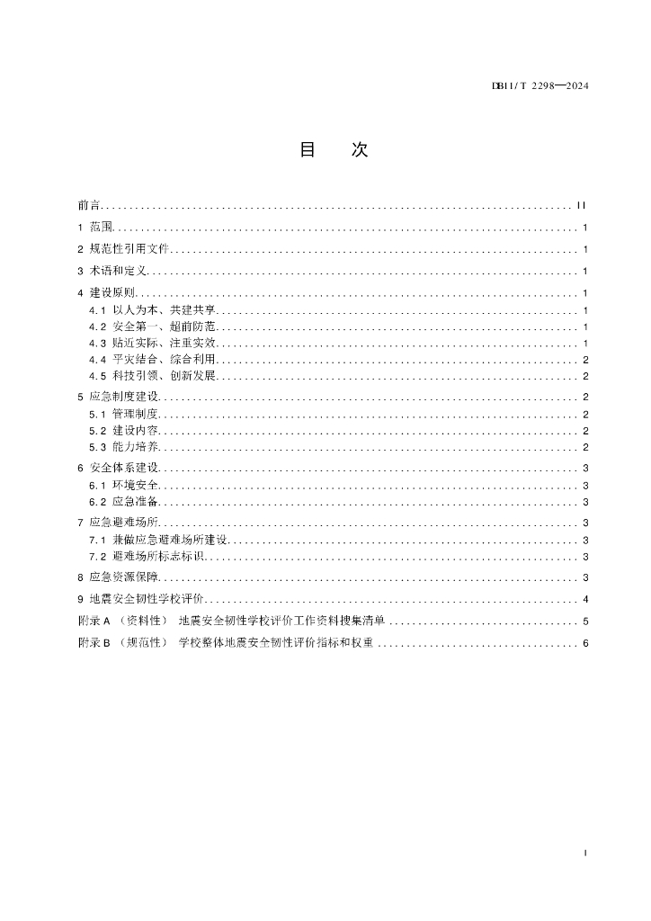 DB11/T 2298-2024 地震安全韧性建设指南 中小学校