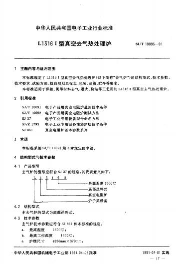 SJ/T 10093-1991 L1316II型真空去气热处理炉