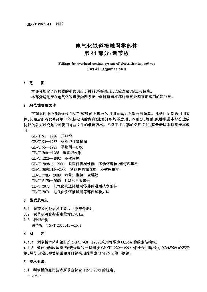 TB/T 2075.41-2002 电气化铁道接触网零部件 第41部分:调节板