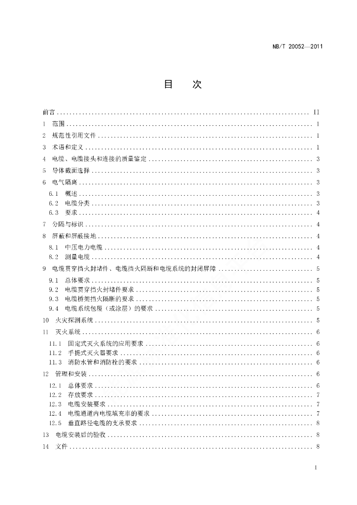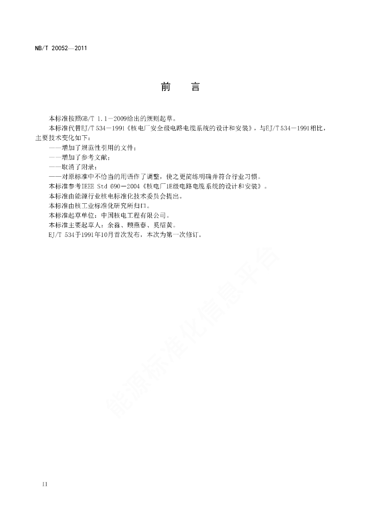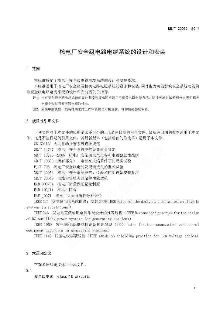 NB/T 20052-2011 核电厂安全级电路电缆系统的设计和安装