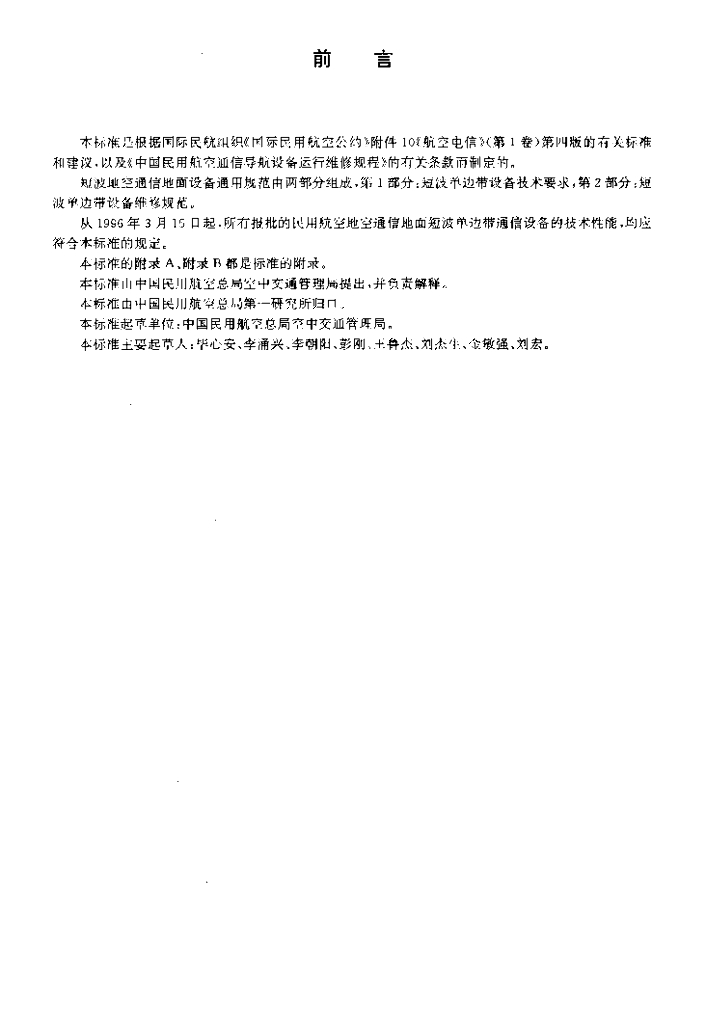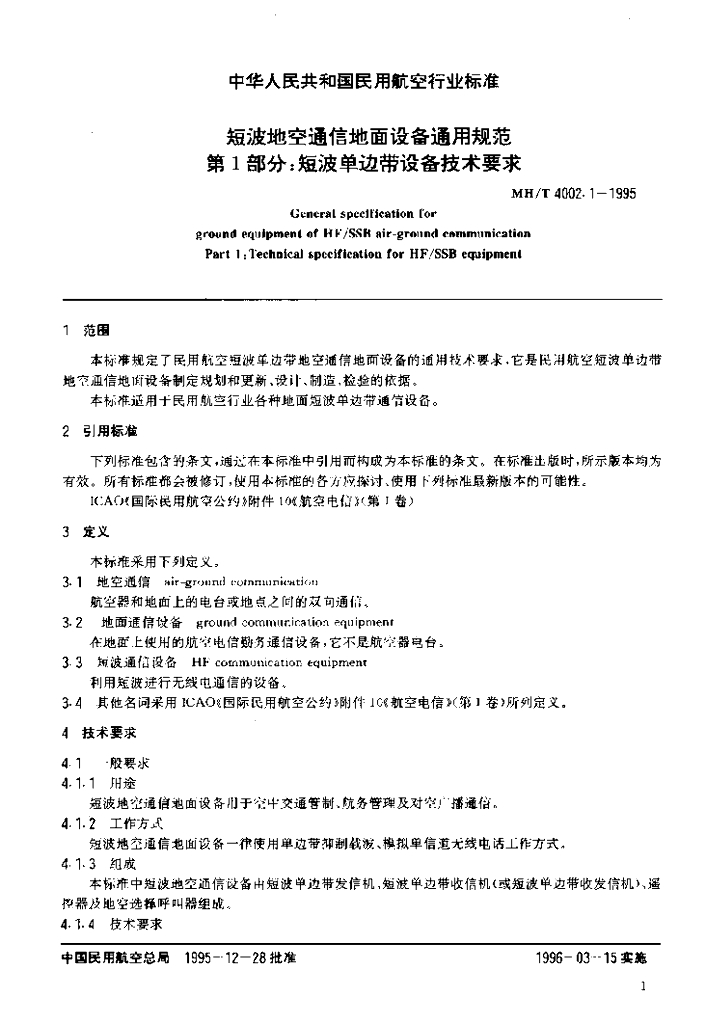 MH/T 4002.1-1995 短波地空通信地面设备通用规范第1部分 短波单边带设备技术要求