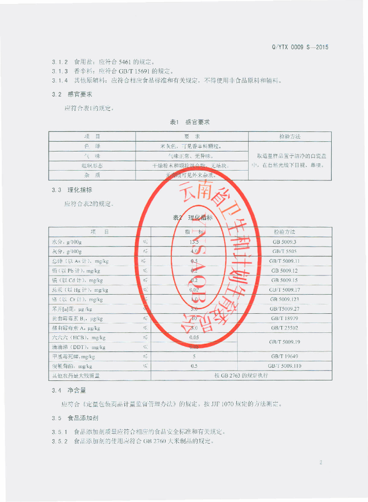 Q/YTX 0009S-2015 昆明裕泰兴商贸有限责任公司 蒸肉粉