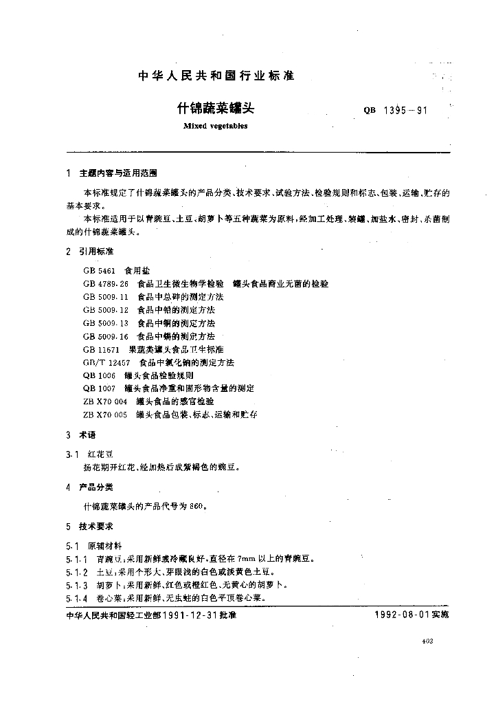 QB 1395-1991 什锦蔬菜罐头