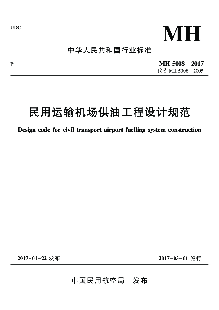MH 5008-2017 民用运输机场供油工程设计规范