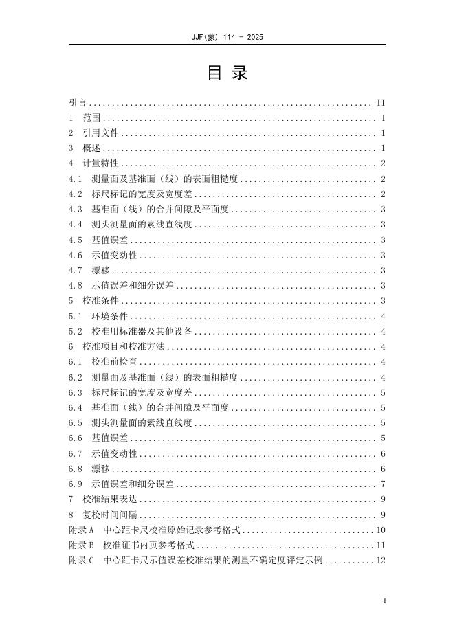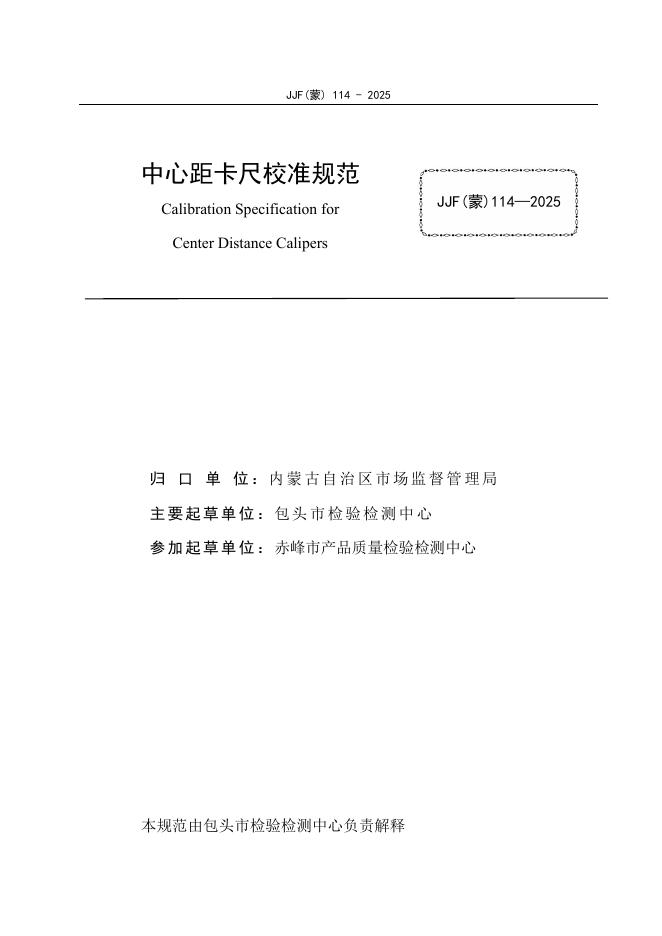 JJF(蒙)114-2025 中心距卡尺校准规范