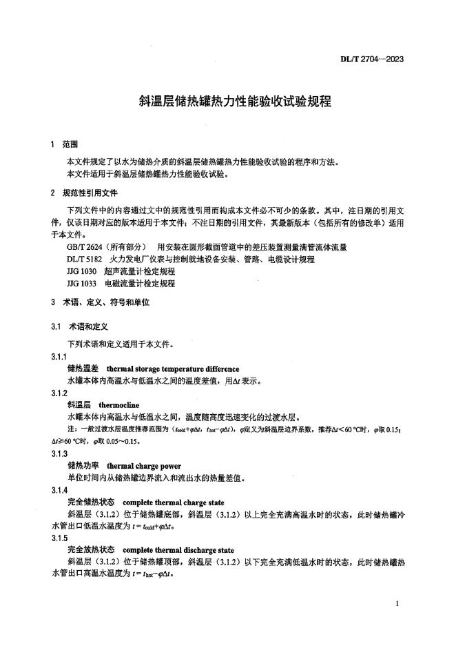 DL/T 2704-2023 斜温层储热罐热力性能验收试验规程