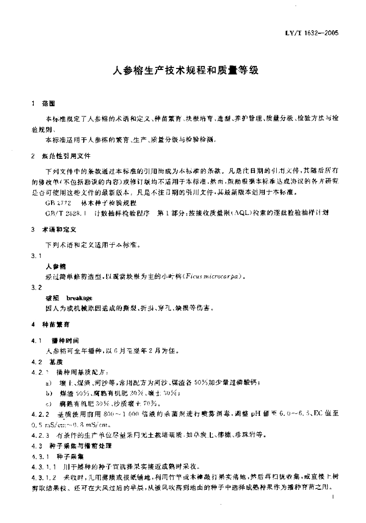 LY/T 1632-2005 人参榕生产技术规程和质量等级