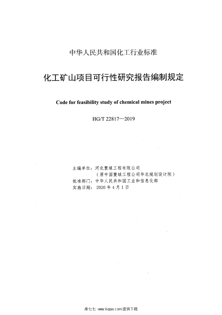 HG/T 22817-2019 化工矿山项目可行性研究报告编制规定