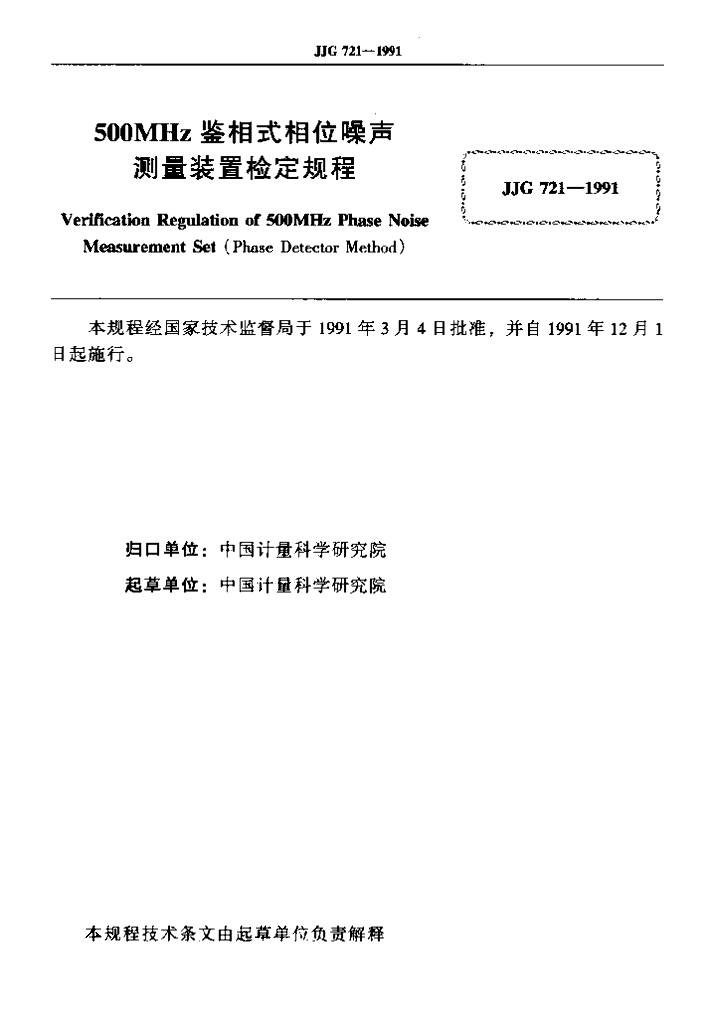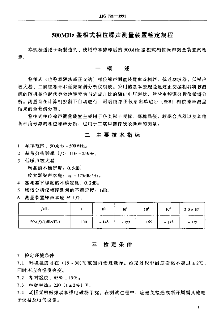 JJG 721-1991 500MHz鉴相式相位噪声测量装置检定规程