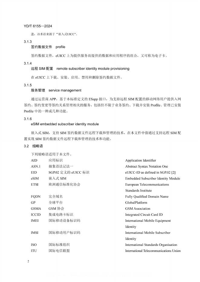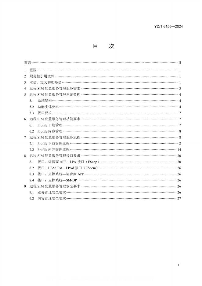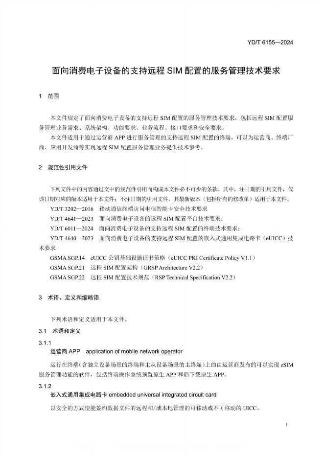 YD/T 6155-2024 面向消费电子设备的支持远程SIM配置的服务管理技术要求