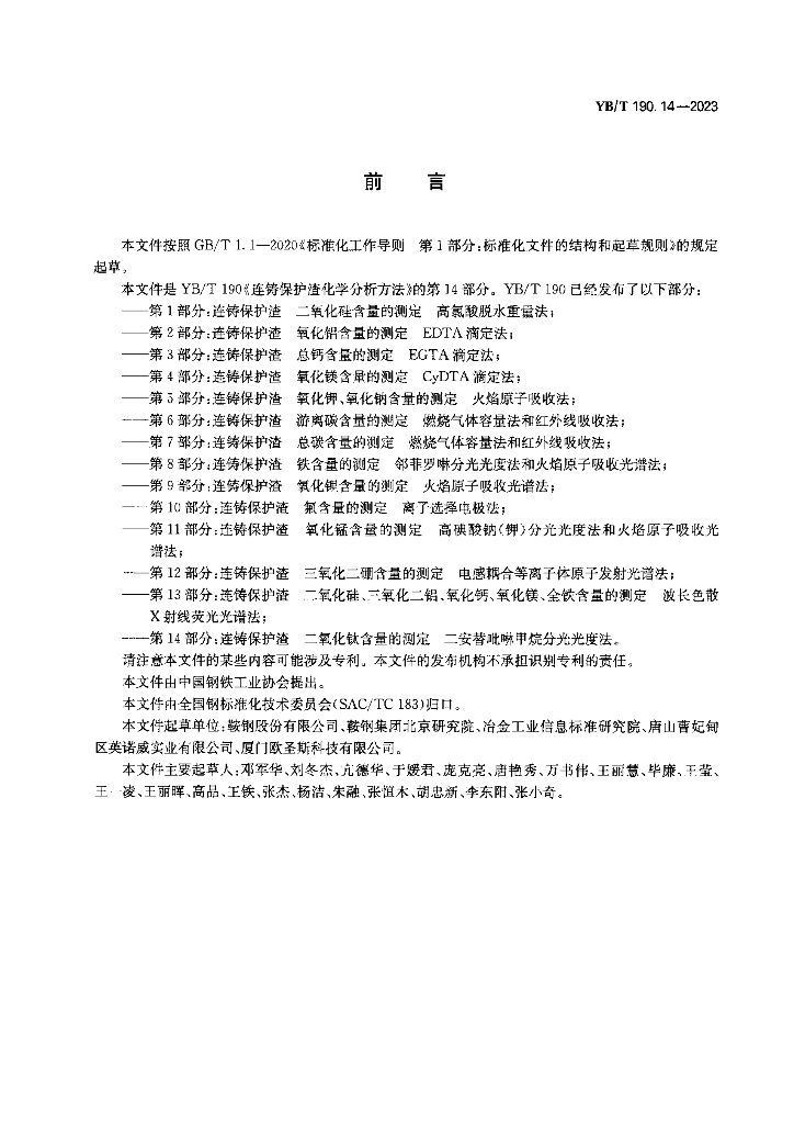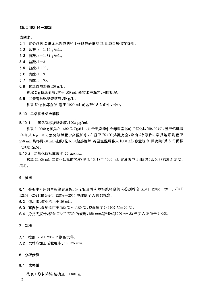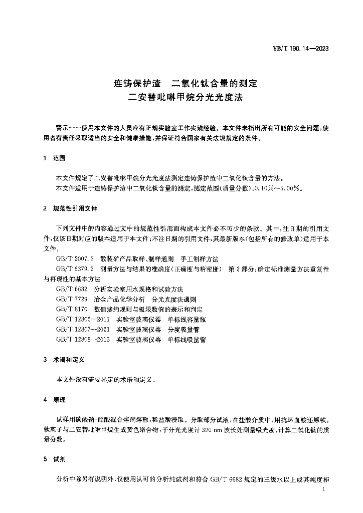YB/T 190.14-2023 连铸保护渣 二氧化钛含量的测定 二安替吡啉甲烷分光光度法