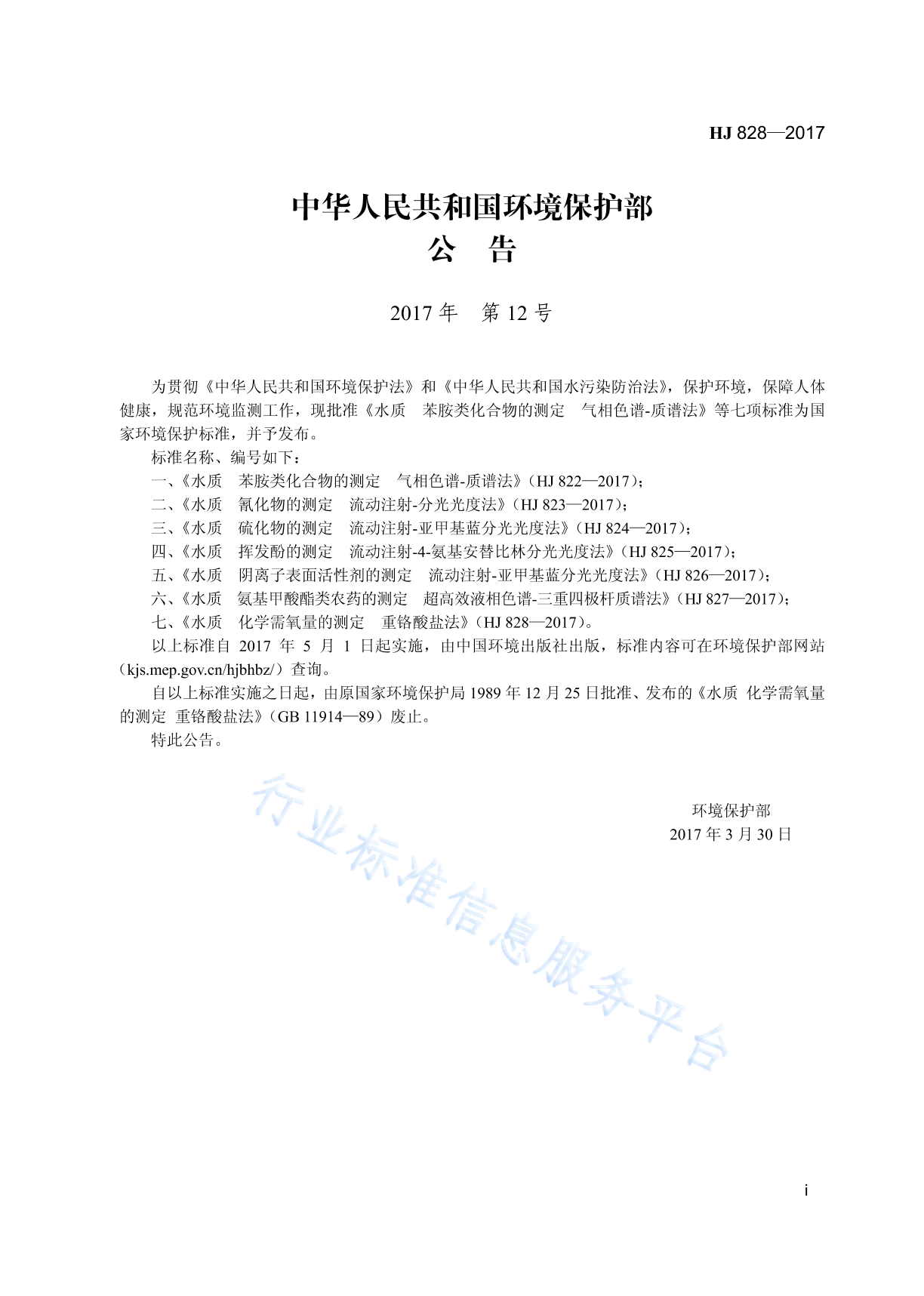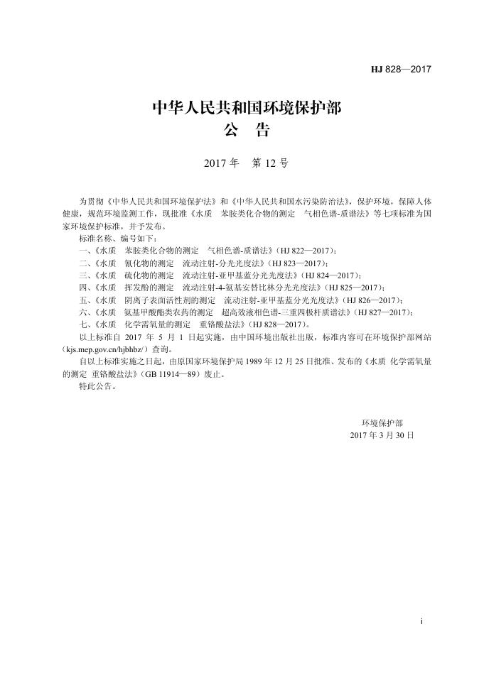 HJ 828-2017 水质 化学需氧量的测定 重铬酸盐法